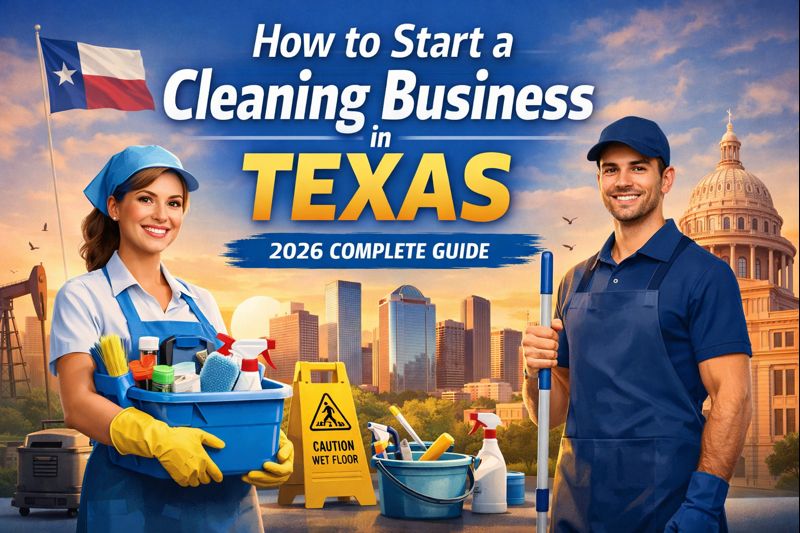 If you are searching for how to start a cleaning business in Texas, this complete guide covers everything you need — legal requirements, registration, taxes, insurance, pricing, equipment, and marketing — explained clearly and simply.